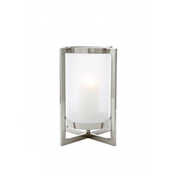Стильний свічник під срібло від модної німецької торгової марки. Матеріал - сталь, скло, алюміній. Вага - 4 кг.