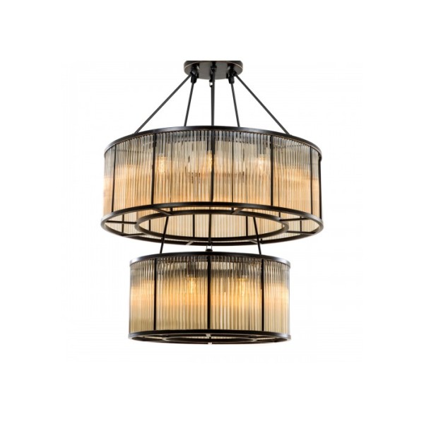 Елегантна стельова люстра Bernardi, виготовлена в Нідерландах. Основні матеріали - рельєфне скло, метал з обробкою під бронзу.